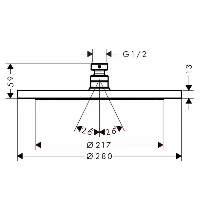 Hansgrohe Croma Верхний душ 28 см EcoSmart, 1 вид струи, регулируемый угол, цвет: хром 26221000