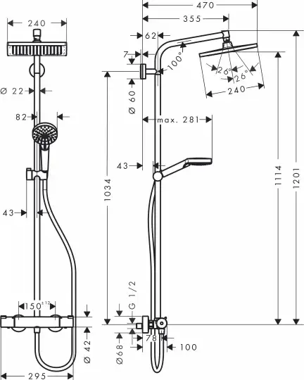 Смеситель, Кронштейн для верхнего душа, Шланг для душа, Держатель для душа