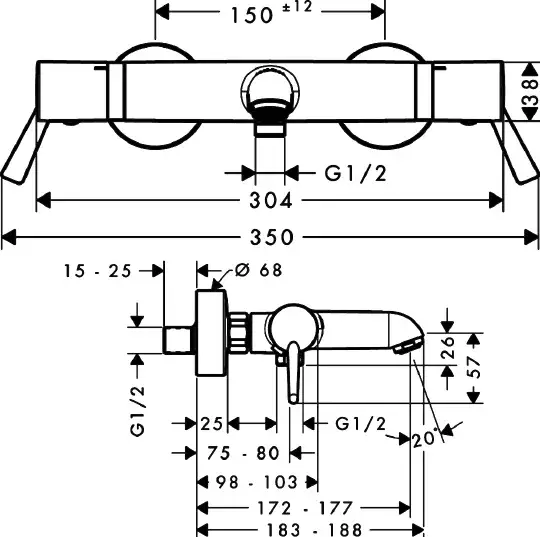 Hansgrohe Ecostat Термостат для ванны Comfort Care BM , длинная рукоятка, излив 17,7 см, цвет: хром 13115000
