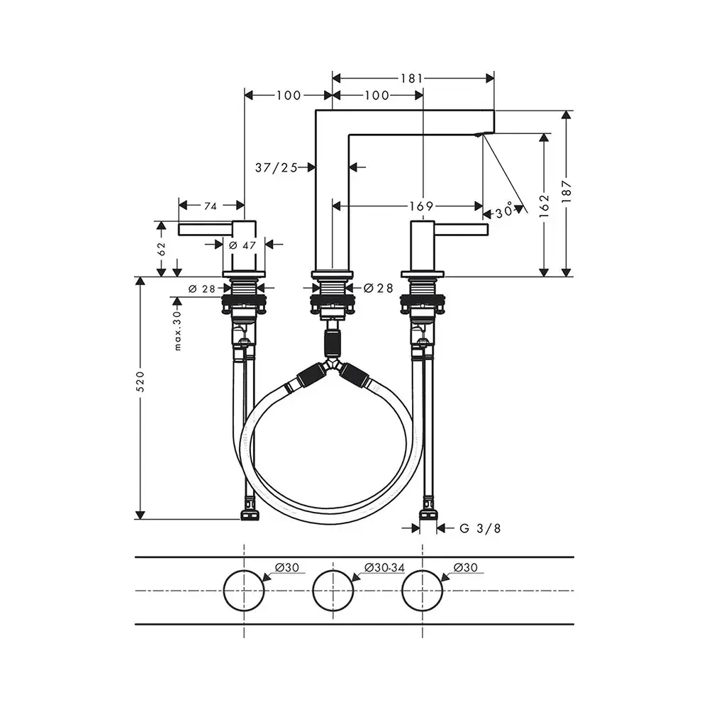 Hansgrohe Finoris Смеситель для раковины на 3 отверстия двухвентильный, цвет: матовый черный 76034670