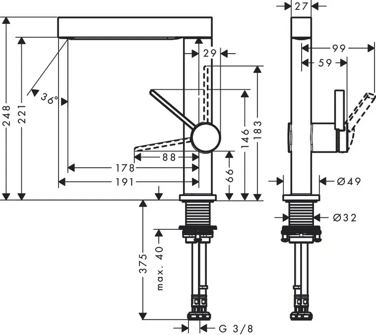 Hansgrohe Finoris Смеситель для раковины, с донным клапаном, цвет: матовый черный 76060670