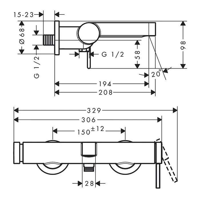 Hansgrohe Finoris Смеситель для ванны, излив 19,4 см, цвет: хром 76420000