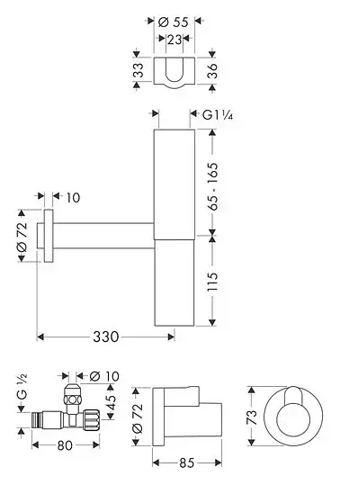 Hansgrohe Flowstar Бутылочный сифон и два угловых вентиля, цвет: хром 52120000