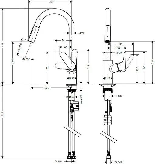 Hansgrohe Focus M41 Смеситель для кухни с выдвижным изливом, латунь, цвет: нержавеющая сталь 31833800