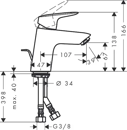 Hansgrohe Logis Смеситель для раковины однорычажный, с донным клапаном, цвет: матовый черный 71107670