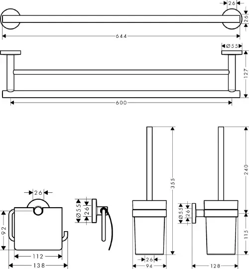 Hansgrohe Logis Universal Набор аксессуаров для ванной Set 5 в 1, латунь цвет: хром 41728000