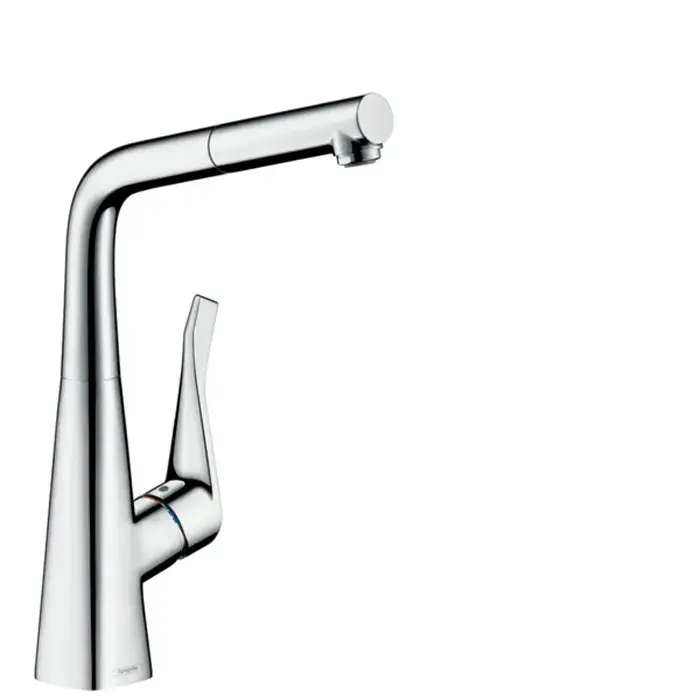Hansgrohe Metris M71 Смеситель для кухонной мойки однорычажный 320 с выдвижным изливом, цвет: хром 73812000