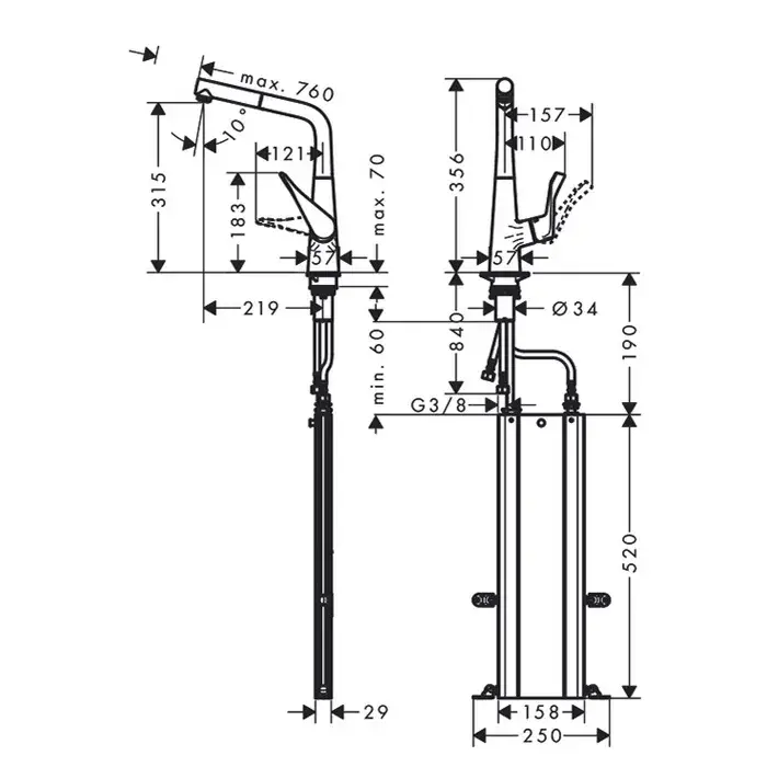 Hansgrohe Metris M71 Смеситель для кухонной мойки однорыч. 320, с выдв. изл. цвет: нержав. сталь 73801800