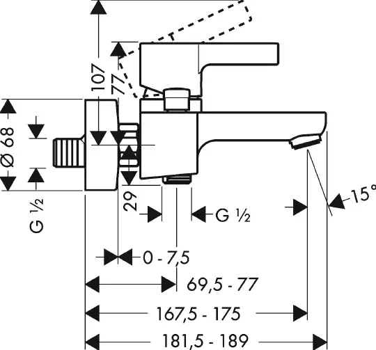 Hansgrohe Metris S Излив настенный для ванны 15,2 см с переключателем на душ, цвет: хром 31417000
