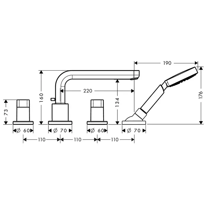 Hansgrohe Metris S Смеситель на борт ванны на 4 отв., с ручным душем, внешняя часть, цвет: хром 31447000