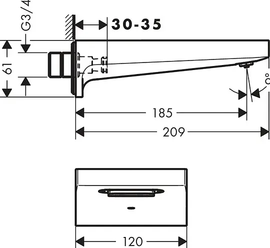 Hansgrohe Metropol Излив настенный для ванны 18,5 см, цвет: хром 32543000