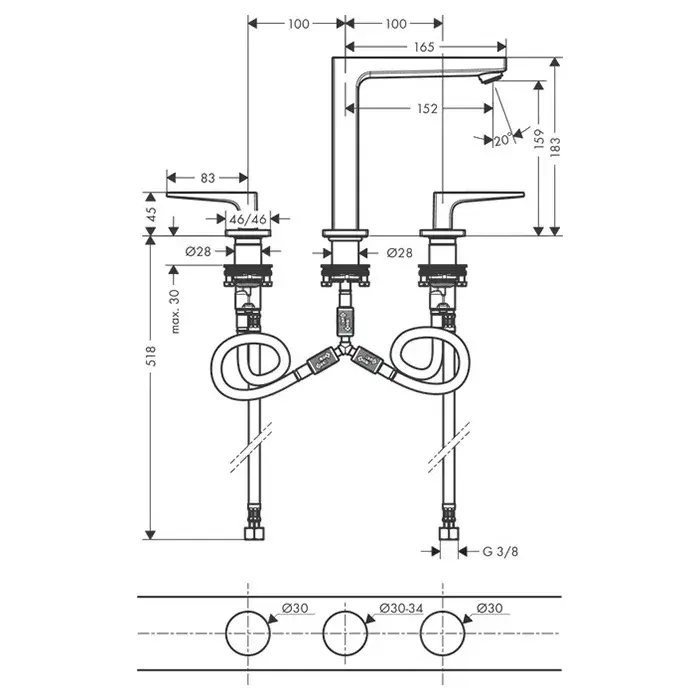 Hansgrohe Metropol Смеситель для раковины на 3 отверстия двухвентильный, цвет: хром 74515000