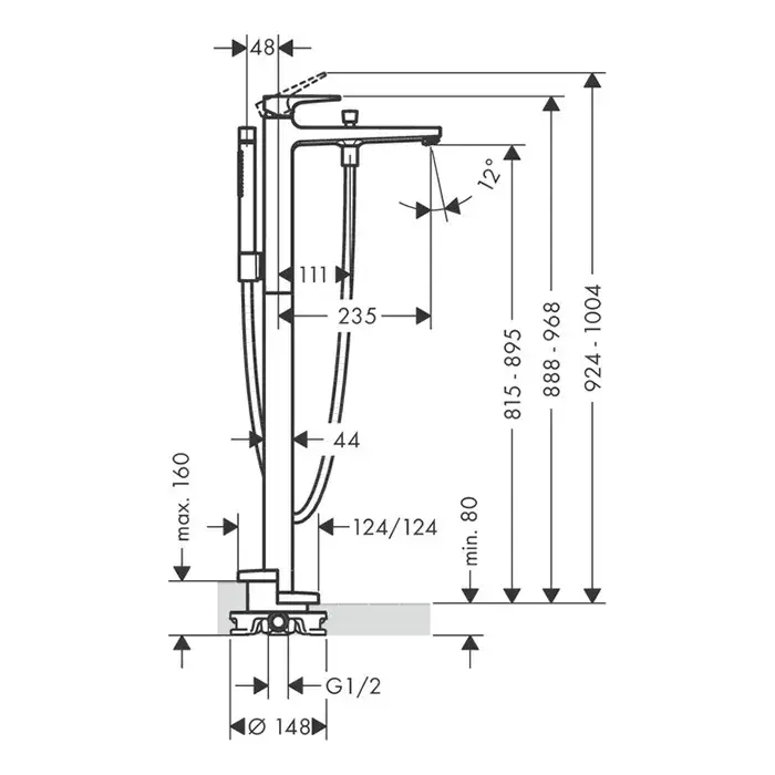 Hansgrohe Metropol Смеситель для ванны напольный с рукояткой-петлей, с ручным душем, цвет: хром 74532000