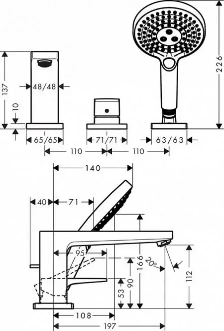 Hansgrohe Metropol Смеситель на борт ванны на 2 отверстия, внешняя часть, цвет: хром 32548000