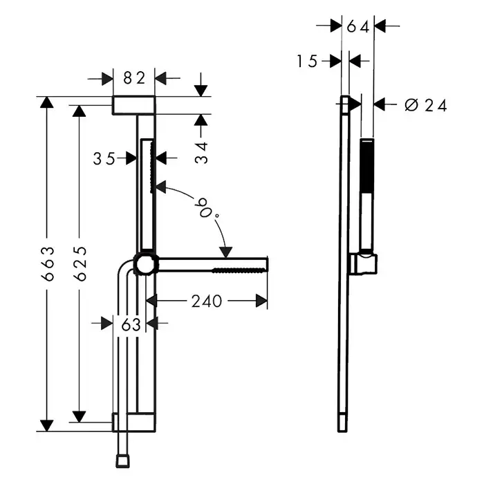 Hansgrohe Pulsify S Душевой гарнитур: лейка 1 режим EcoSmart+, штанга 95 см шланг 160 см, цвет: хром 24383000