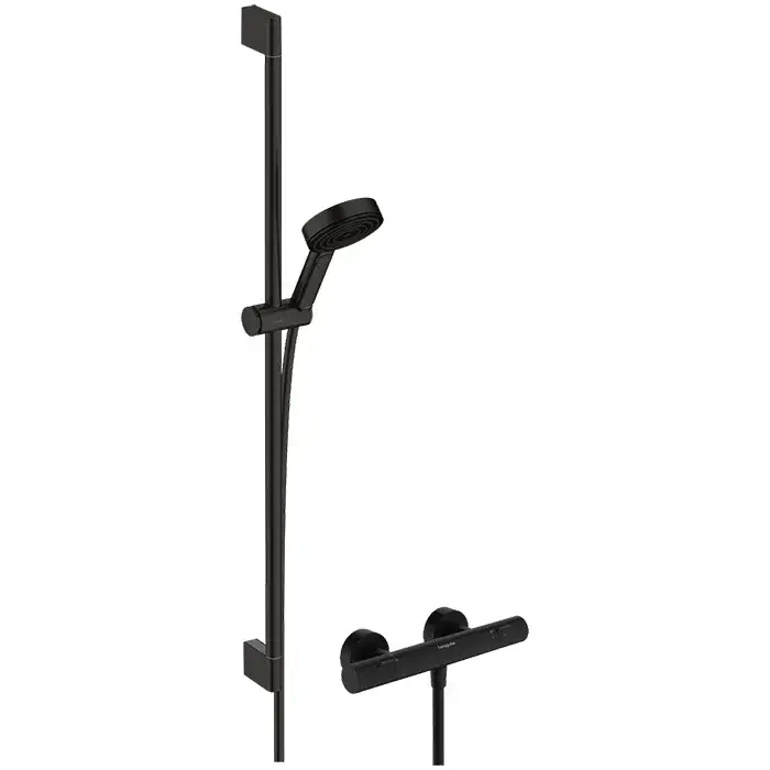 Hansgrohe Pulsify Select S Душевой комплект с термостатом, руч. душем и штангой 90 см, цвет: черный 24261670