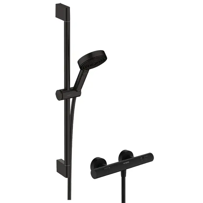 Hansgrohe Pulsify Select S Душевой комплект с термостатом, руч. душем и штангой 90 см, цвет: черный 24261670
