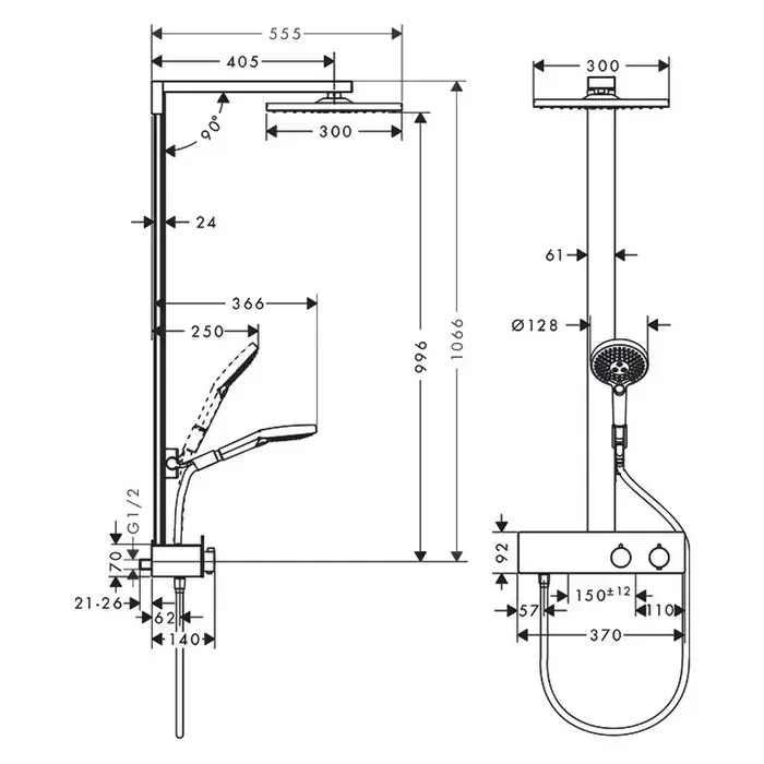 Hansgrohe Raindance E Душевая стойка: термостат, верхний душ 30x30 см, ручной душ, цвет: хром 27361000