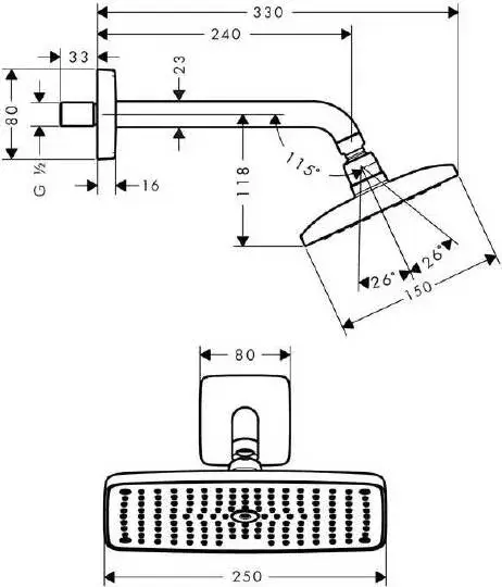 Hansgrohe Raindance E Верхний душ 25x15 см, 1 вид струи, кронштейн настенный 24 см, цвет: хром 27370000