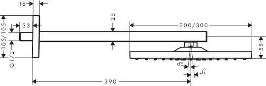 Hansgrohe Raindance E Верхний душ 30 см, 1 вид струи, кронштейн настенный 39 см, цвет: хром 26238000