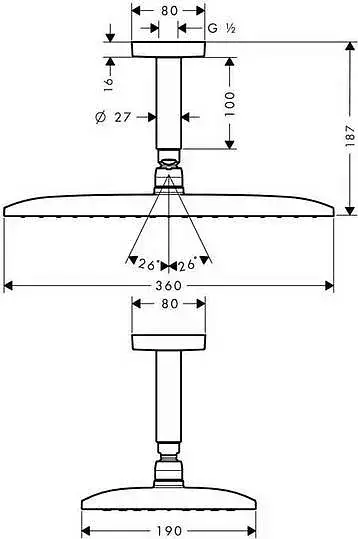 Hansgrohe Raindance E Верхний душ 36x19 см, 1 вид струи, кронштейн потолочный 10 см, цвет: хром 27381000