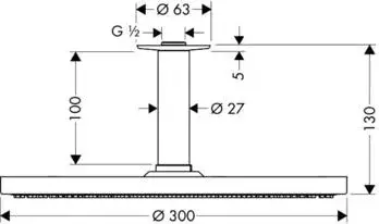 Hansgrohe Raindance S Верхний душ 30 см, 1 вид струи, кронштейн потолочный 10 см, цвет: хром 27494000