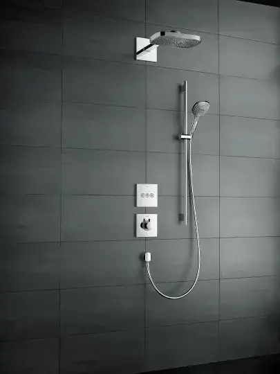 Hansgrohe Raindance Select E Душевая стойка:термостат,верхний душ EcoSmart 30x16см, цвет: хром/белый 27283400