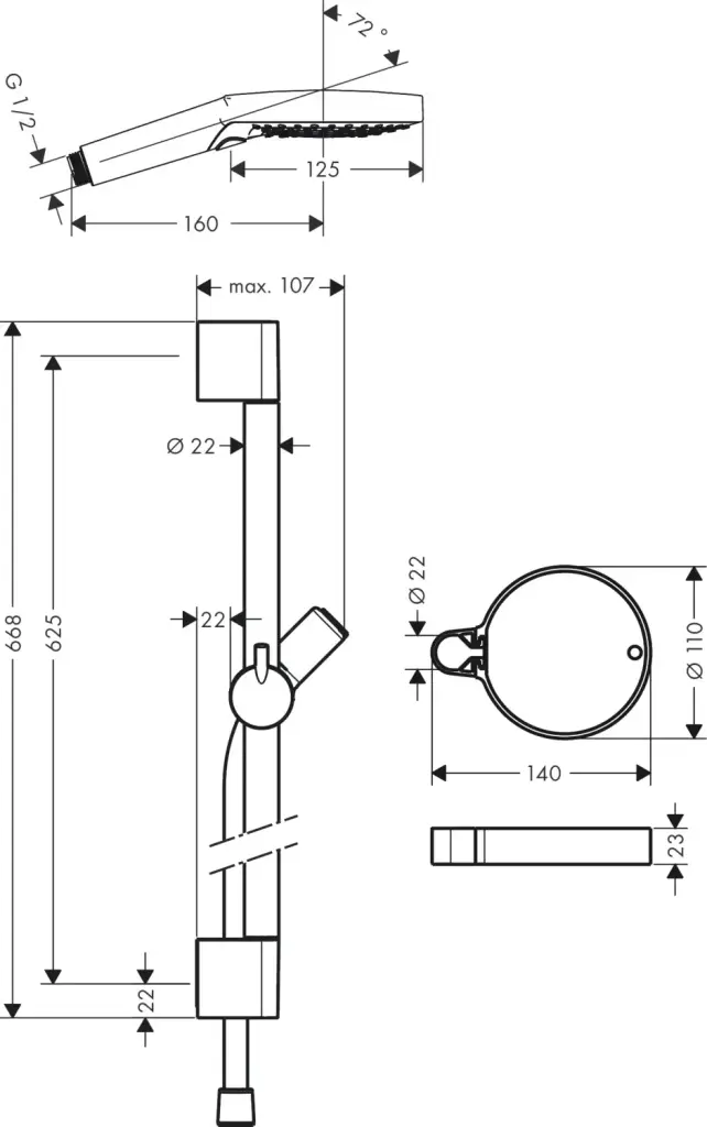 Душевой шланг, Держатель для душа, Душевая штанга