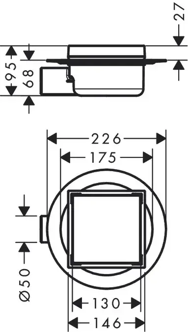 Hansgrohe RainDrain Точечный слив с решеткой квадр. 22,6х22,6х9,5h см, цвет: нерж. сталь 56112800
