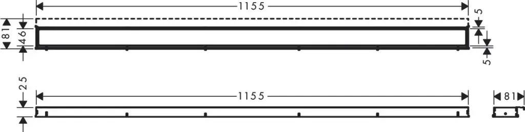 Hansgrohe RainDrain Внешняя часть лин. слива для душа 115,5х8,1х2,5h см, цвет: нерж. сталь 56042800