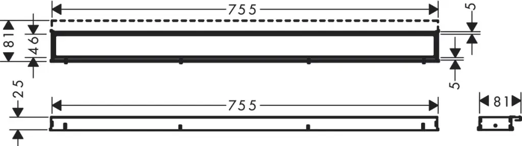 Hansgrohe RainDrain Внешняя часть линейного слива для душа 75,5х8,1х2,5h см, цвет: хром 56038000