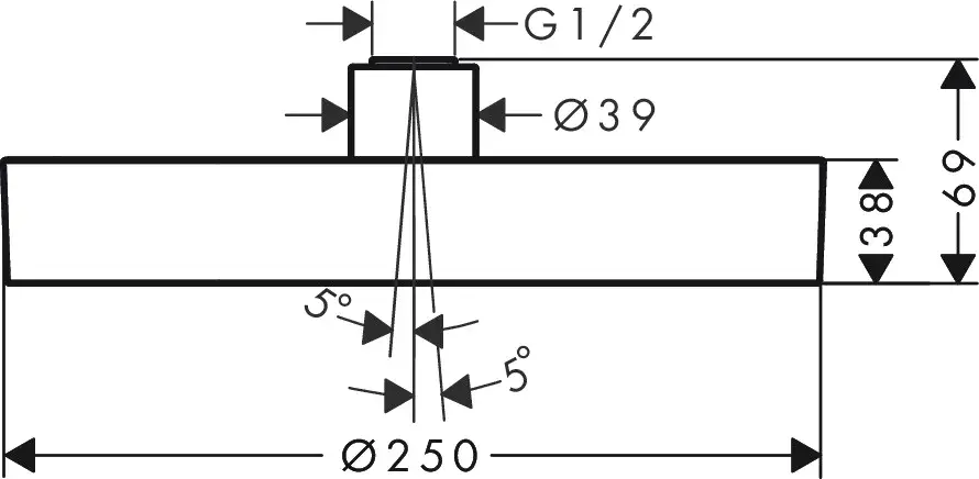 Размер верхнего душа, см