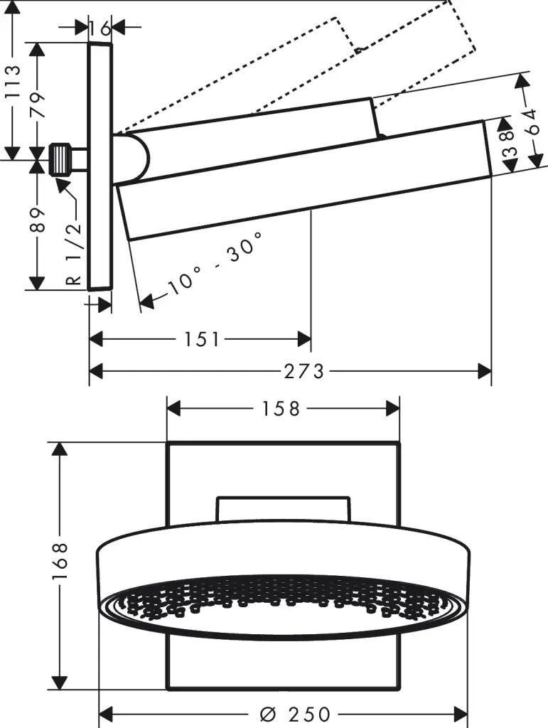 Размер верхнего душа, см