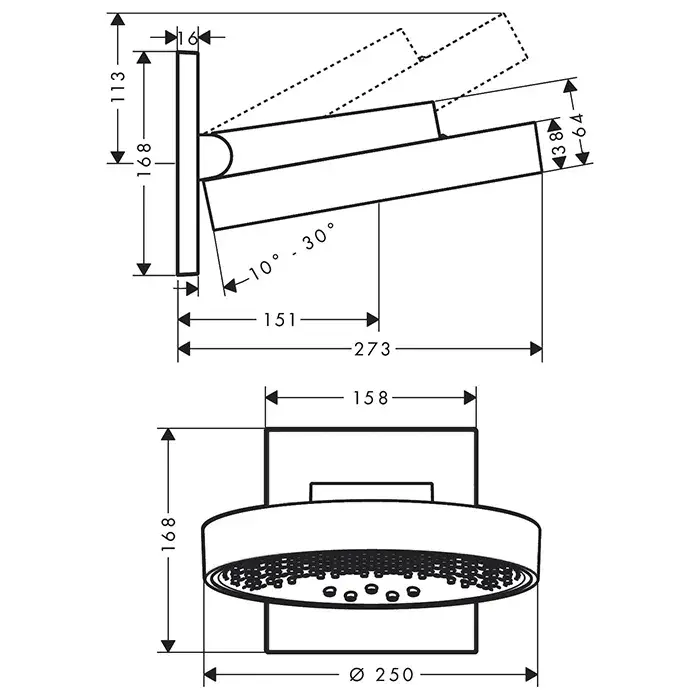 Hansgrohe Rainfinity Верхний душ 36 см, 3 вида струи, настенное крепление, цвет: матовый черный 26234670