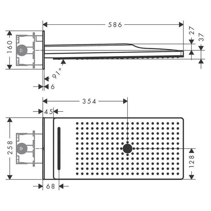 Hansgrohe Rainmaker Select Верхний душ встраиваемый на стену 26x59см 3jet, цвет: хром/черный матовый 24001600