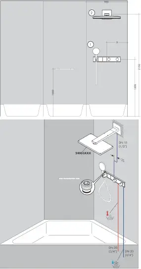 Hansgrohe RainSelect Термостат для душа встраиваемый на 2 потребителя, с держателем, цвет: хром 15355000