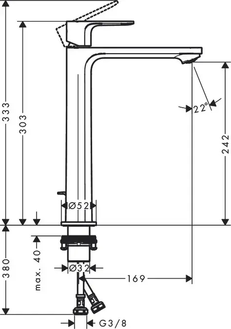 Hansgrohe Rebris E Смеситель для раковины однорычажный, без донного клапана, цвет: хром 72560000