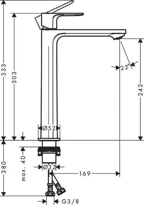 Hansgrohe Rebris S Смеситель для раковины однорычажный, без донного клапана, цвет: хром 72520000
