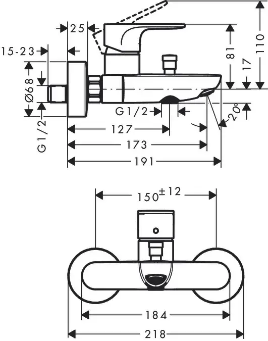 Hansgrohe Rebris S Смеситель для ванны, излив 17,3 см, цвет: хром 72440000