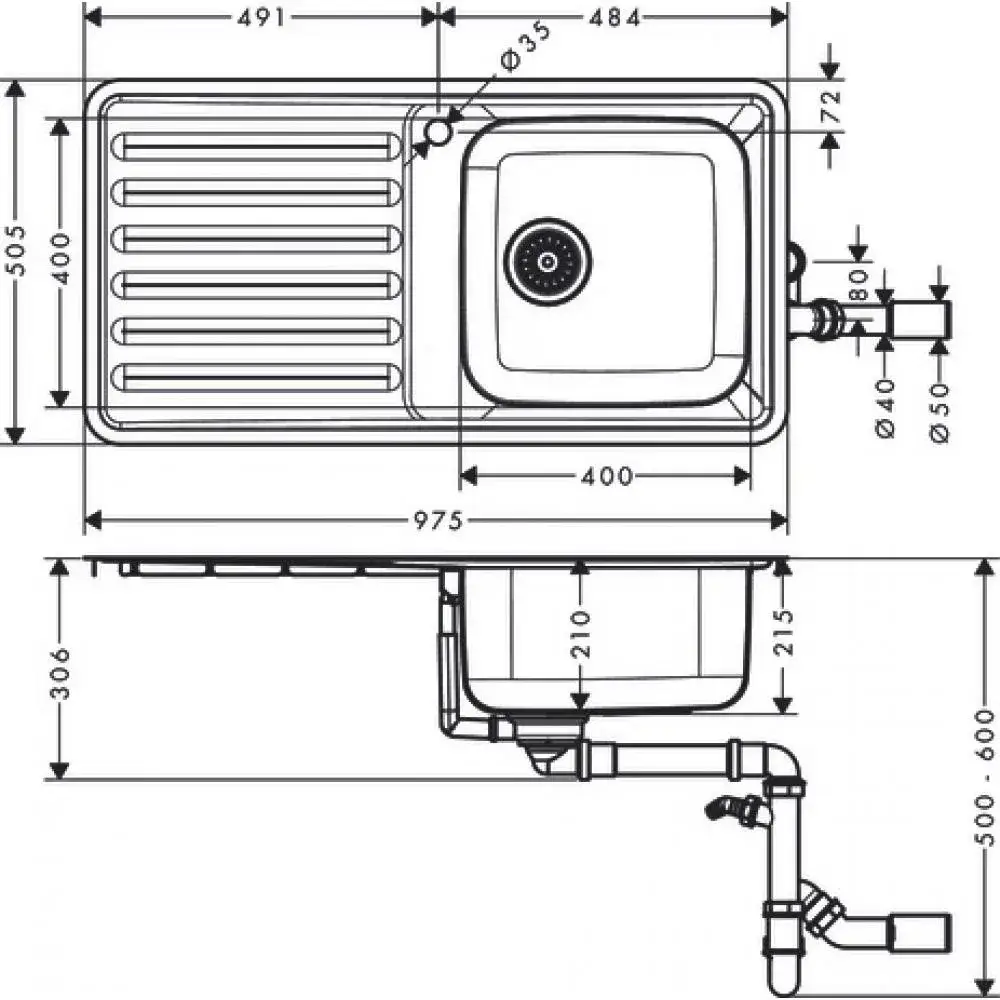 Hansgrohe S41 Кухонная мойка встраиваемая сверху 1 чаша, слив 97,5x50,5 см, цвет: нержавеющая сталь 43341800