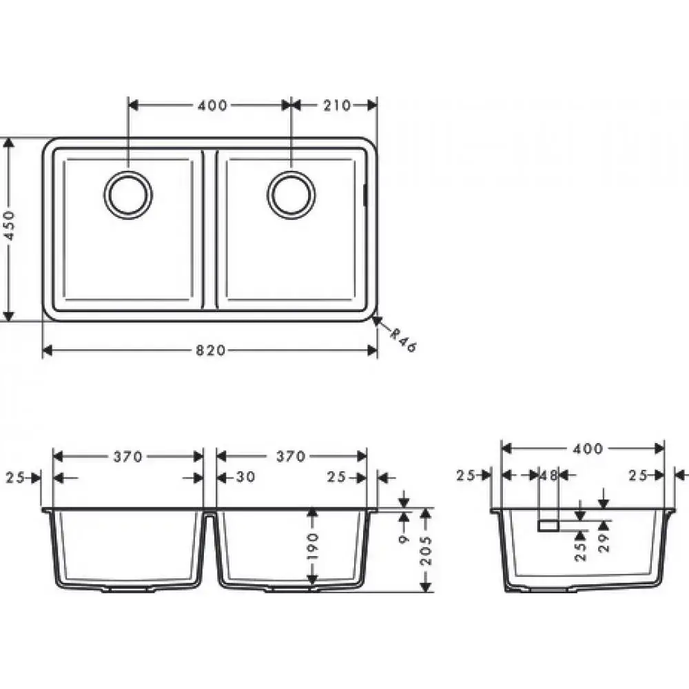 Hansgrohe S51 Кухонная мойка встраиваемая снизу 2 чаши 82x45 см, цвет: черный графит 43434170