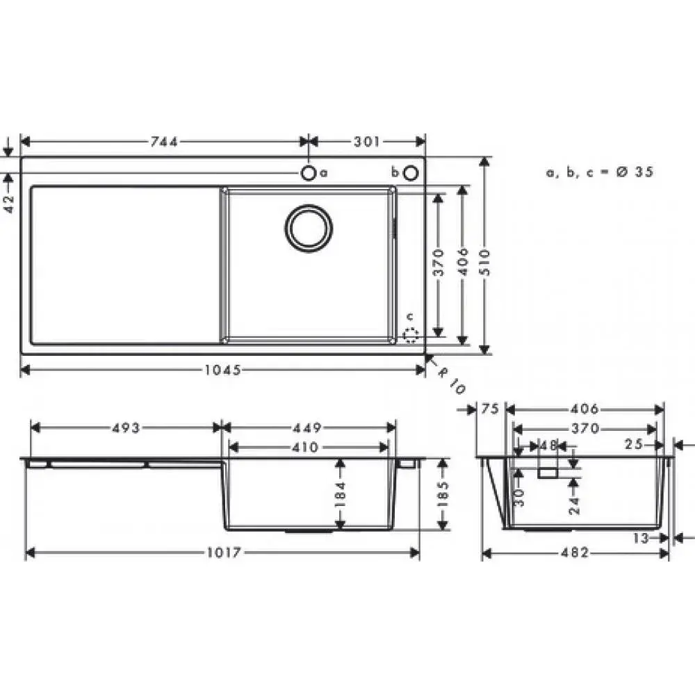 Hansgrohe S71 Кухонная мойка встраиваемая сверху 1 чаша 104,5x51 см, цвет: нержавеющая сталь 43331800