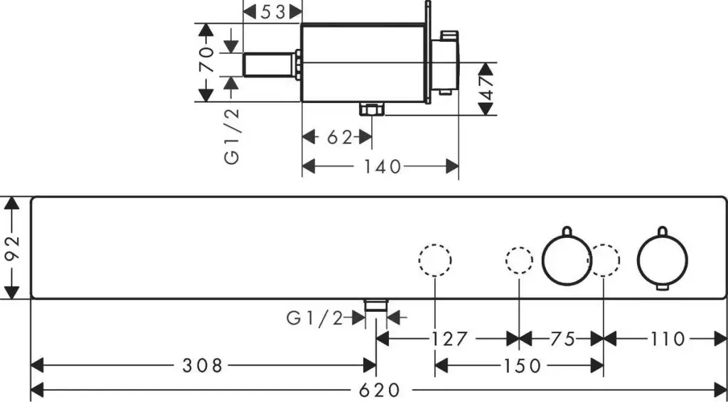 Hansgrohe ShowerTablet Термостат для ванны BM 62 см, излив 19,5 см, цвет: хром/белый 13109400