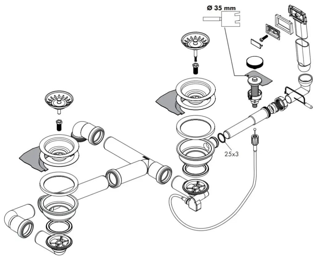Hansgrohe Слив-перелив D17-11 с автоматическим управлением для гранитной мойки, цвет: хром 43938000