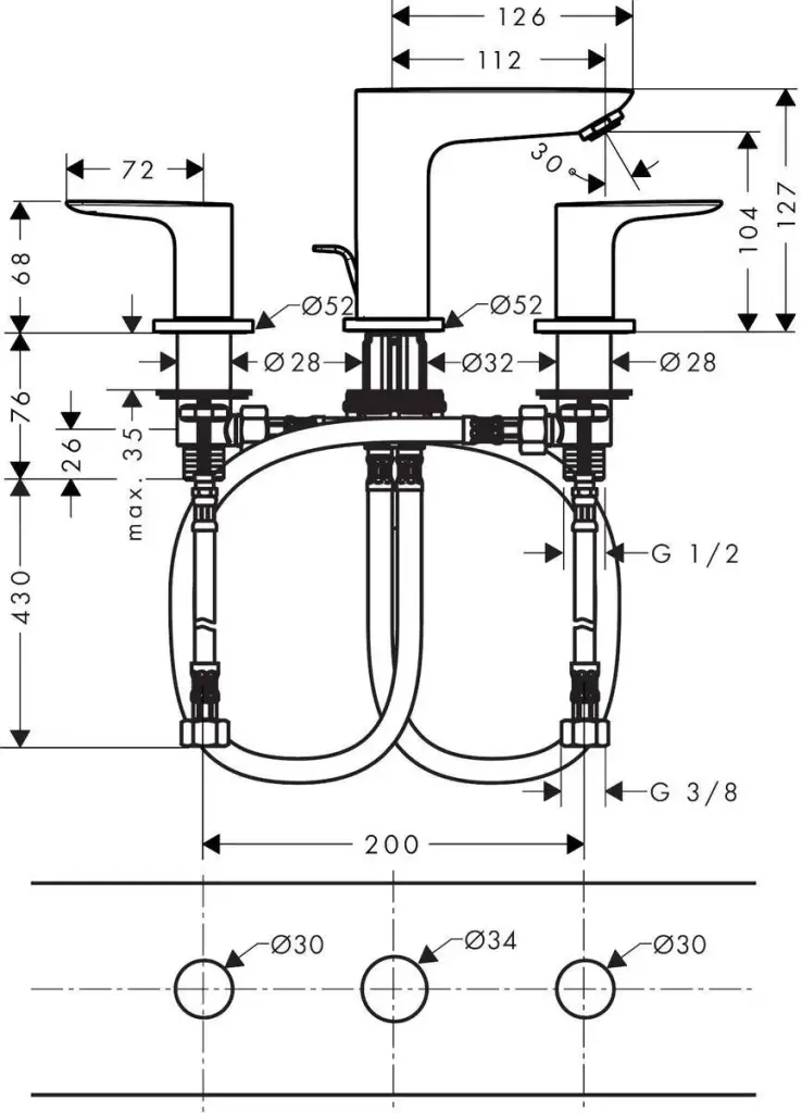 Hansgrohe Talis E Смеситель для раковины на 3 отверстия двухвентильный, цвет: полированное золото 71733990
