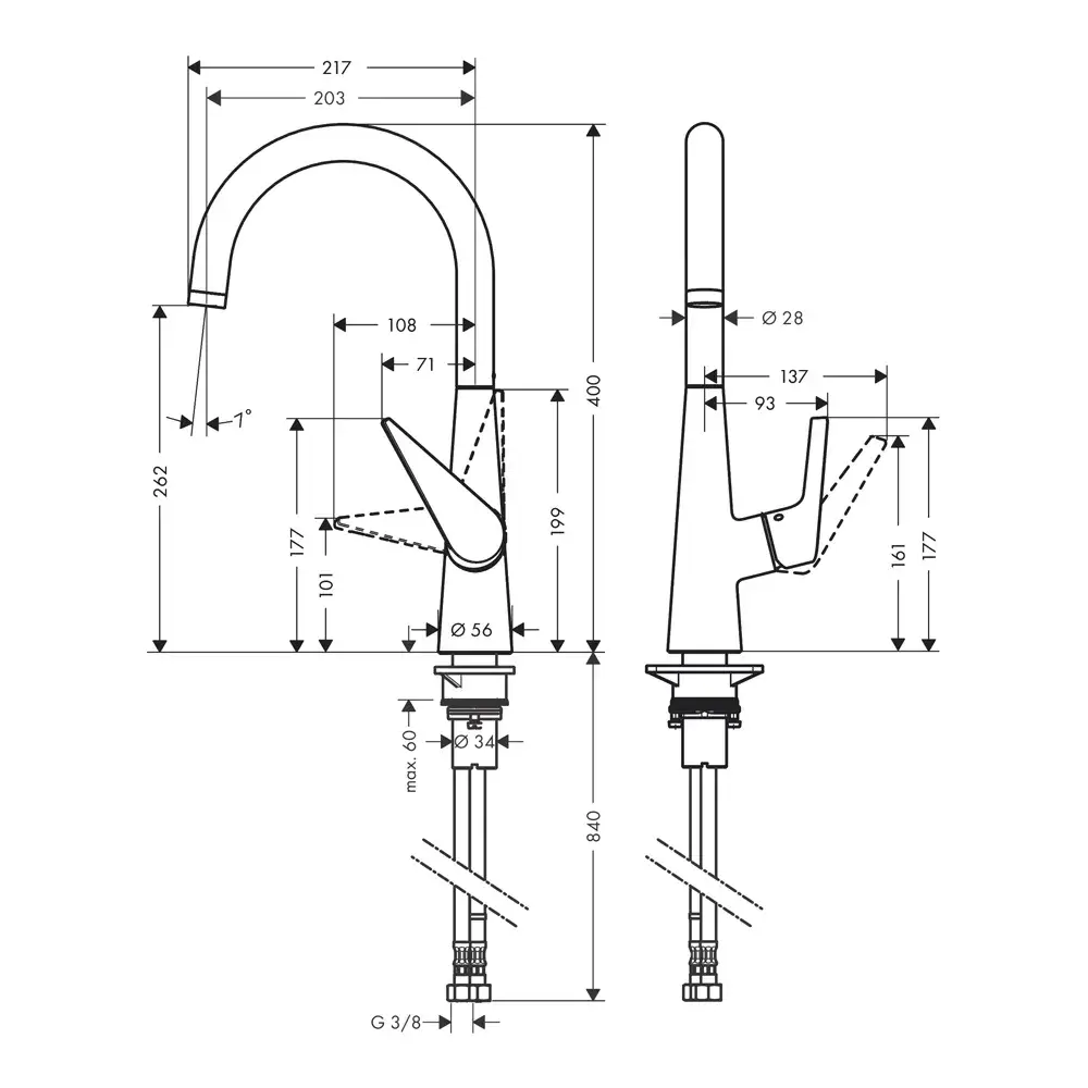 Hansgrohe Talis M51 Смеситель для кухонной мойки однорычажный 220 1jet, цвет: хром 72814000
