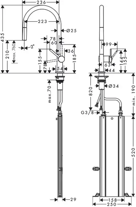 Hansgrohe Talis M54 Смеситель для кухонной мойки однорычажный U 220, цвет: матовый черный 72806670