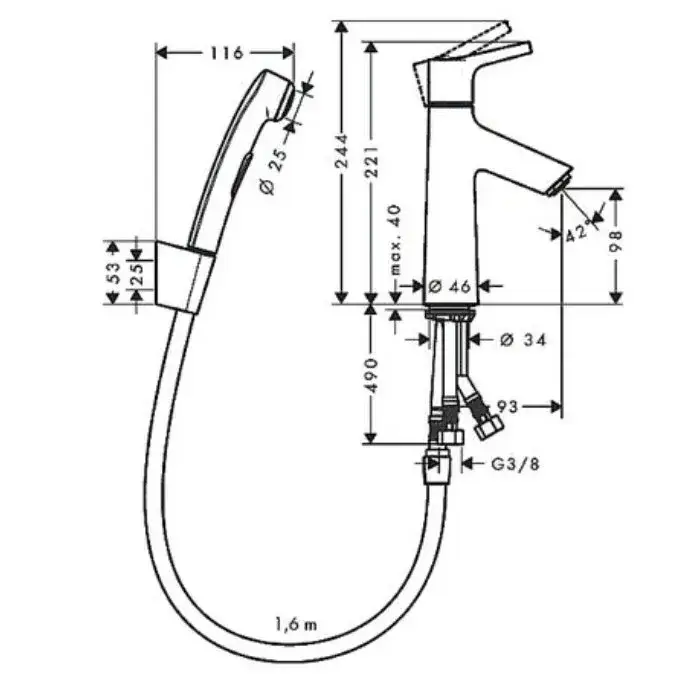 Hansgrohe Talis S Смеситель для раковины однорычажный с гигиеническим душем, цвет: хром 72290000