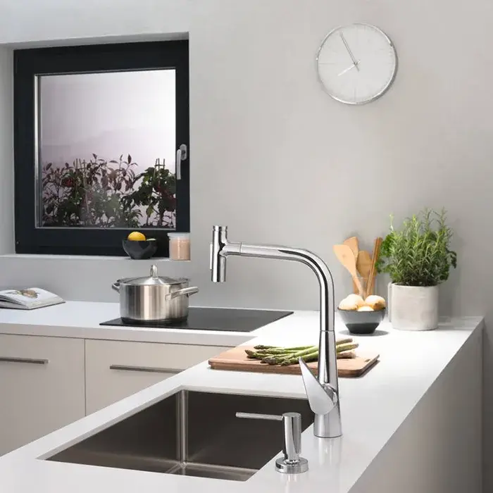 Hansgrohe Talis Select M51 Смеситель для кухонной мойки однорычажный 220, с выдв. излив. цвет: хром 72822000
