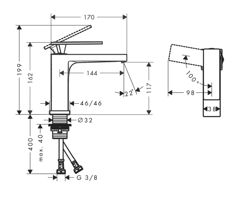 Hansgrohe Tecturis E Смеситель для раковины однорычажный, без донного клапана, цвет: хром 73012000